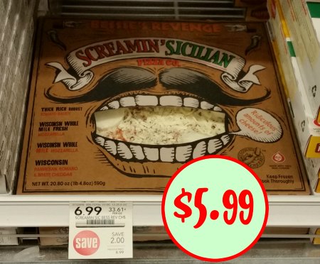 $3 Screamin Sicilian Pizza | Kroger Deal Ends Today Screamin' Sicilian Pizza, 20.6-25 oz, $5 -$1 off Screamin Sicilian Pizza printable -.75/1 Screamin' Sicilian Frozen Pizza, 16.35 oz+, excl single serve pizzas, stromboli and loaded roll items, Ibotta mobile app -$1 off Screamin' Sicilian Frozen Pizza, 16.35 oz+, excl single serve pizzas, stromboli and loaded roll items, Ibotta mobile app